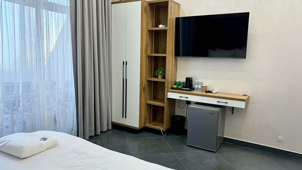 Уютный и комфортабельный вариант для отдыха вдвоём. Двуспальная кровать, кондиционер, телевизор, холодильник и Wi-Fi — всё, чтобы чувствовать себя как дома.