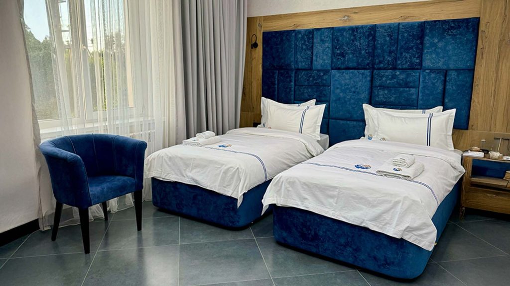 Современные номера с общим балконом и видом на бассейн. В каждом — две односпальные кровати, кондиционер, телевизор, холодильник. Отличный вариант для друзей или деловой поездки.